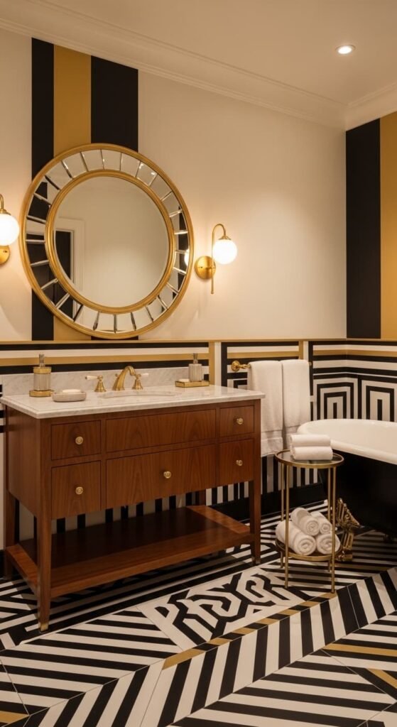 White paired with gold accents creates a refined and sophisticated bathroom design. Gold fixtures, mirror frames, and lighting stand out beautifully against a white backdrop. This combination adds warmth and luxury without overwhelming the space, resulting in a timeless, elegant bathroom with a modern twist.