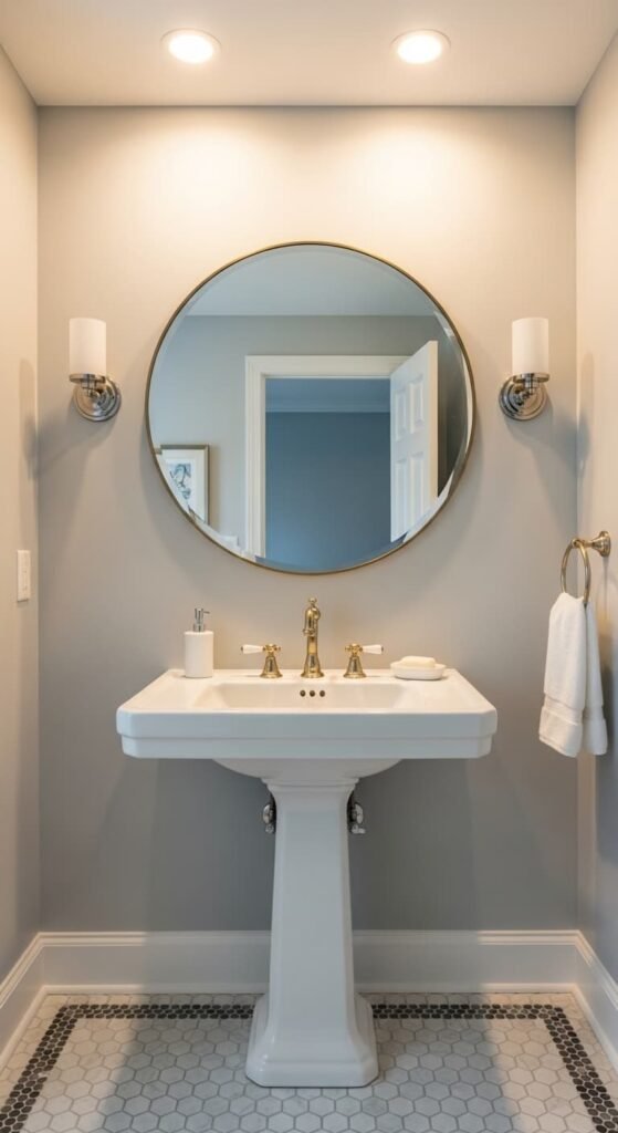 Adding light gray tones to a white bathroom creates a sophisticated monochrome palette. This subtle contrast adds depth while keeping the space modern and elegant. It’s ideal for a calm and balanced design.