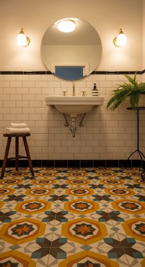 14. Vintage Tile Pattern Bathroom