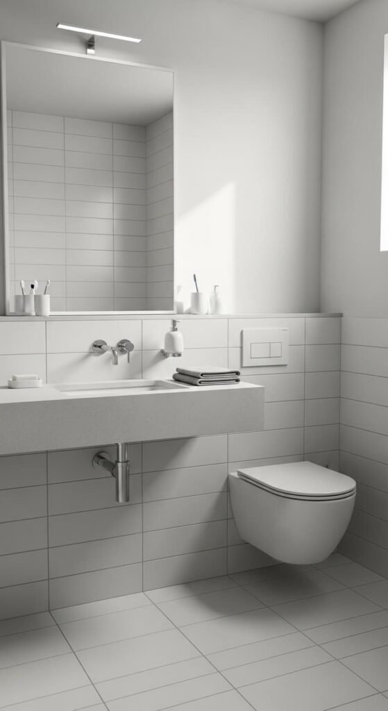 Using a monochrome palette of whites and soft grays creates a cohesive and spacious feel. Light colors reflect more light, helping small bathrooms appear bigger and brighter. This modern approach emphasizes simplicity while maintaining elegance and visual harmony.