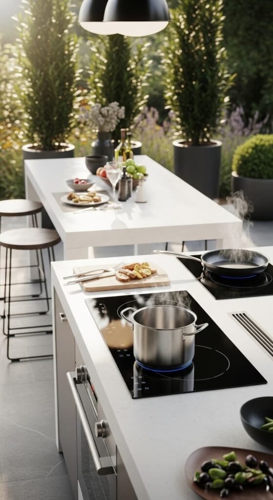 An induction cooker is an energy-efficient and affordable option for outdoor kitchens. It heats quickly and provides precise control. Its compact design makes it easy to use on small counters while maintaining a modern look.