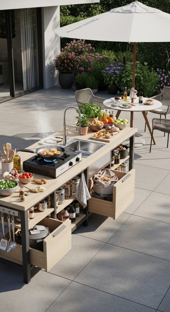 A multi-function cooking kit combines grill, burner, and griddle features in one appliance. It’s a cost-effective solution for those who want versatility without buying multiple devices. Perfect for small outdoor kitchens, it saves space while offering complete cooking functionality.