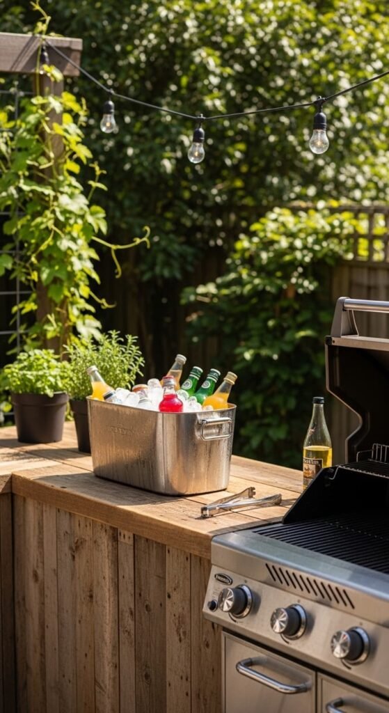 A cooler can replace an expensive refrigerator in budget outdoor kitchens. It keeps drinks cold and is easy to move around. This simple appliance is perfect for casual gatherings and outdoor entertaining.